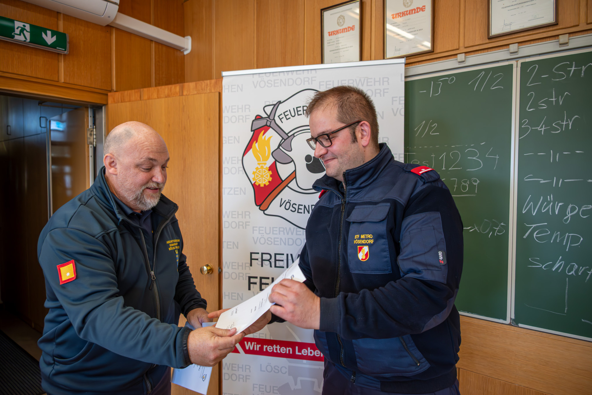 Nach der Lernerfolgskontrolle markierte die Zeugnisvergabe den erfolgreichen Abschluss des Moduls. Modulleiter BSB Robert Unger und Abschnittsfeuerwehrkommandantstellvertreter der Abschnitts Mödling-Wienerwald, Martin Sipser, richteten dankende Worte an das Ausbildungsteam für ihren Einsatz, gratulierten den Modulteilnehmern zum erfolgreichen Abschluss des Moduls und bedankten sich bei allen Beteiligten für den gewohnt reibungslosen Ablauf.
