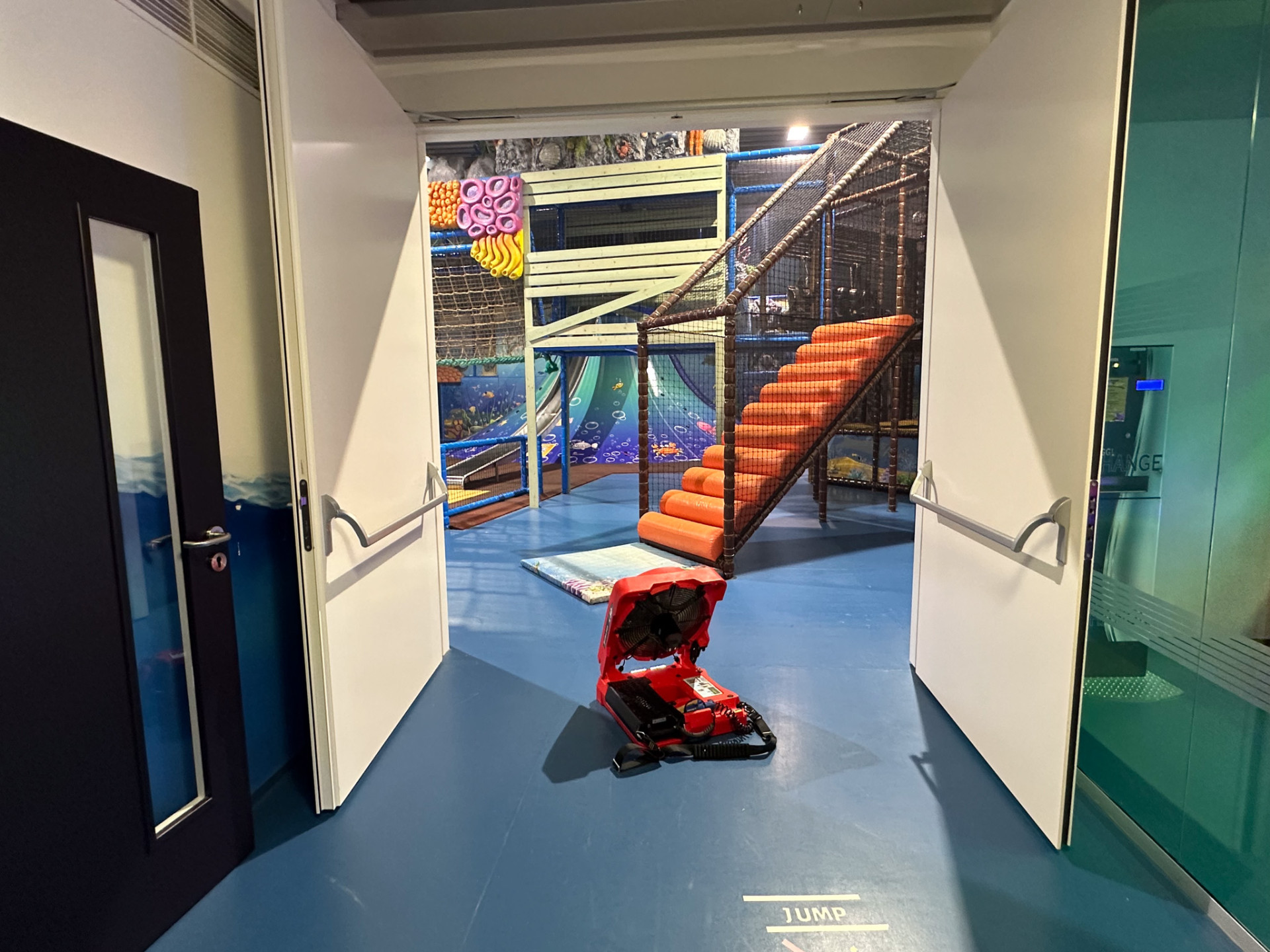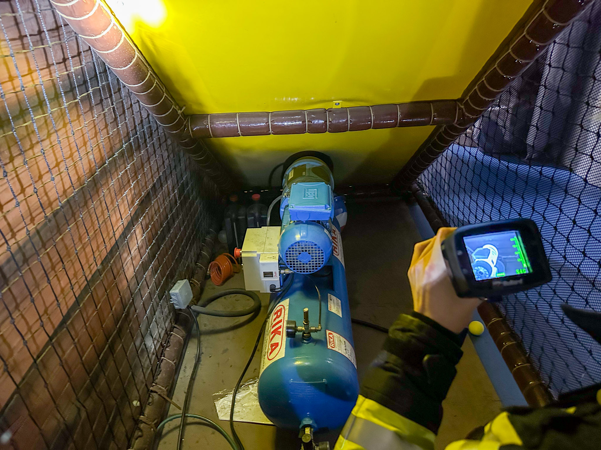 Kurz nach 23:00 Uhr erfolgte der zweite Einsatz des Tages. In einem Indoorspielplatz kam es zu einer Brandmelderauslösung. Durch den Erkundungstrupp wurde ein intensiver Brandgeruch und eine leichte Rauchentwicklung wahrgenommen. Als Ursache konnte ein überhitzter Kompressor identifiziert werden. Nach Abschaltung des Gerätes und Kontrolle mittels einer Wärmebildkamera, wurde die betroffene Halle mit einem Druckbelüfter entraucht.