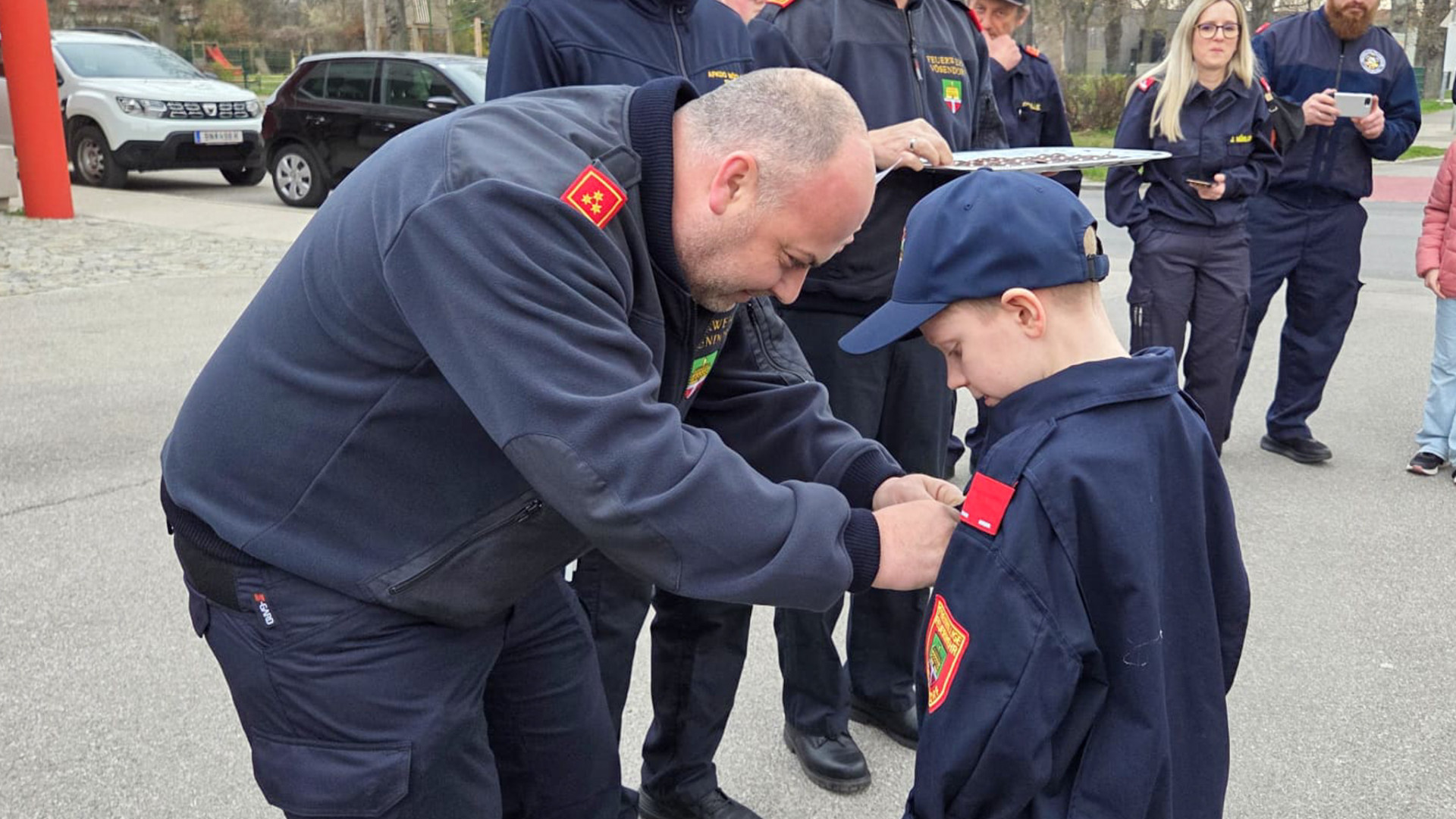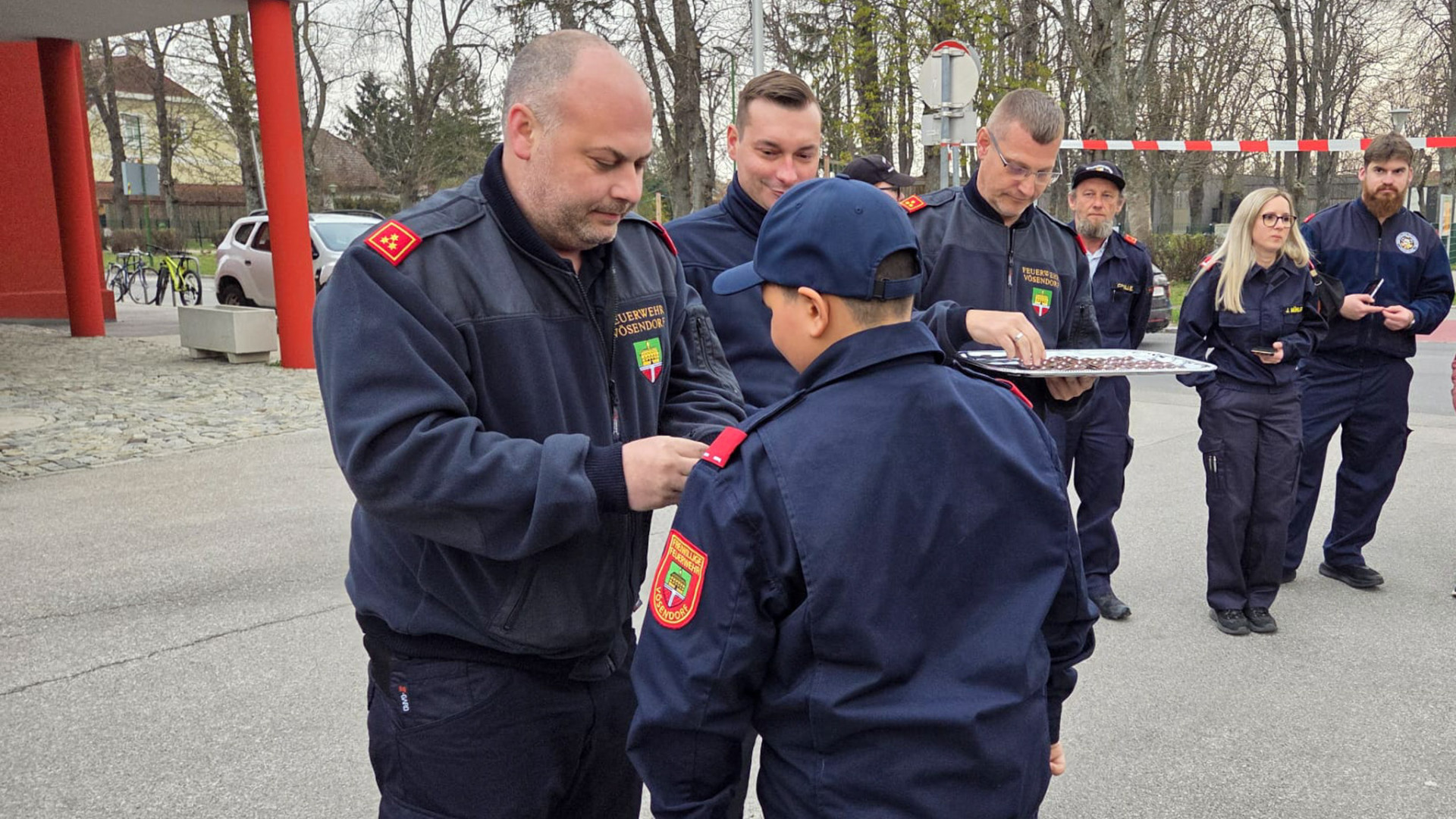 Zum Abschluss konnten alle Vösendorfer Jugendfeuerwehrmitglieder stolz ihre wohlverdienten Abzeichen entgegennehmen. Feuerwehrkommandant Hauptbrandinspektor David Hanny sowie sein Stellvertreter Christian Ried wohnten der Verleihung bei und gratulierten dem Feuerwehrnachwuchs persönlich zu ihren Leistungen.