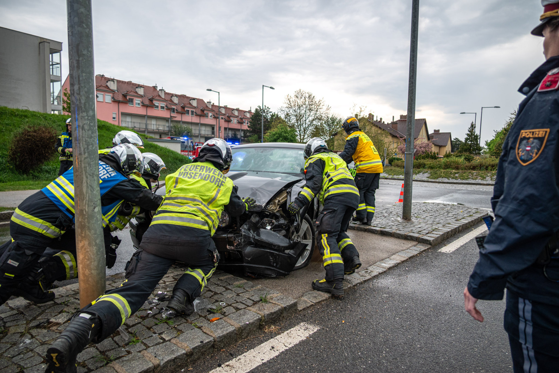 Am 19.04.2026 wurde die Freiwillige Feuerwehr Vösendorf kurz nach 15:00 Uhr zu einer PKW-Bergung alarmiert. Ein Lenker hatte die Kontrolle über seinen PKW verloren und war mit einer Laterne kollidiert.
